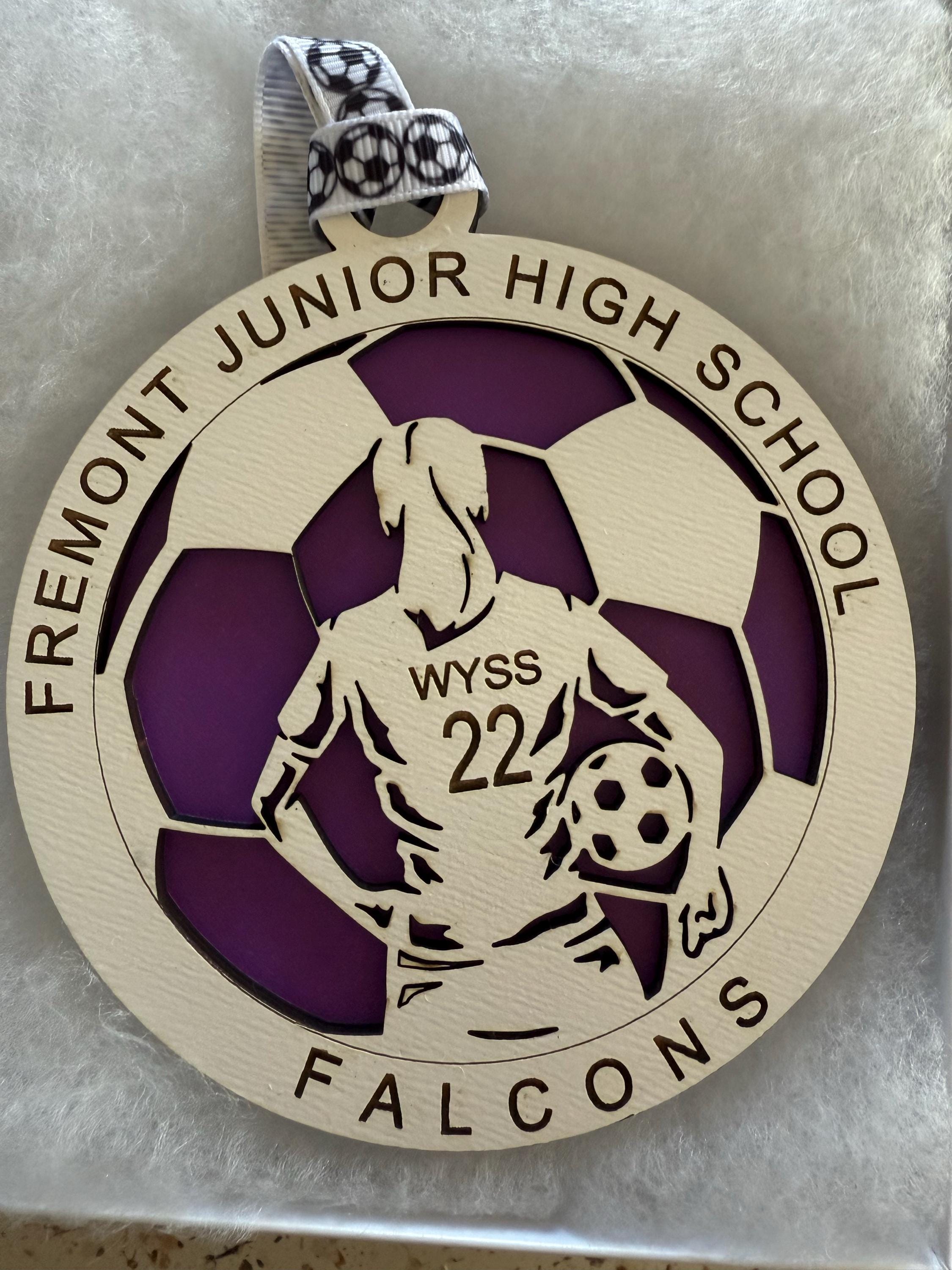 Score big with the perfect touch for your favorite soccer player! Our personalized 3D soccer ornament is not just a decoration; it's a heartfelt tribute to all those unforgettable moments on the field. Crafted from layered wood and engraved with their team name and customized text, this unique piece celebrates their journey and passion for the game..makes the perfect Senior gift!